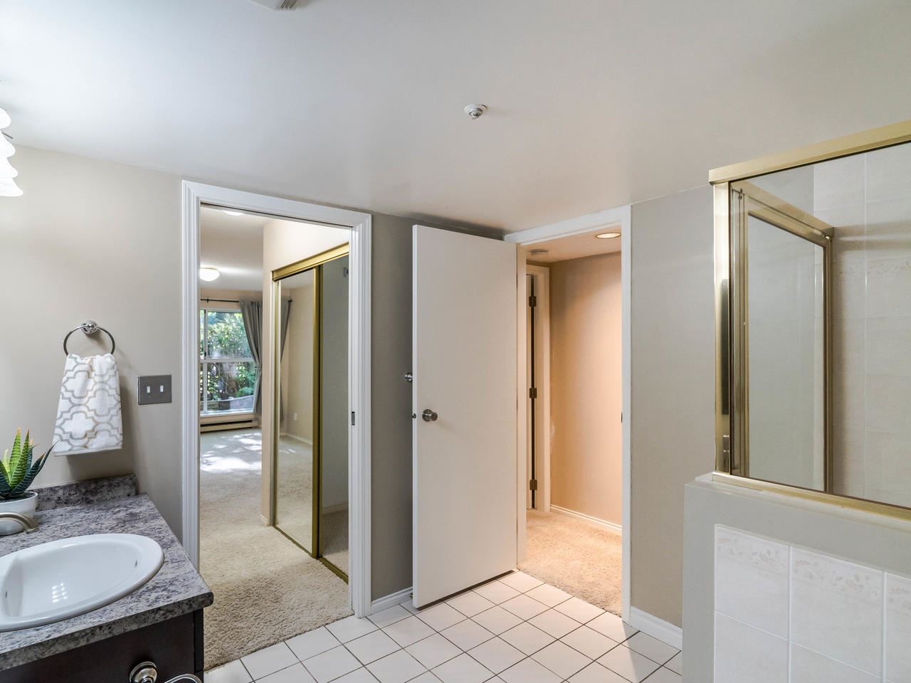 Best priced ultra-spacious 1,030 sf one bdrm end unit with a 200+ sf outdoor secret garden oasis with your own townhouse style private entrance. A rare find located in convenient Central Park! This entertainer’s delight home has a cozy new gas fireplace, gourmet kitchen with newer Bosch appliances, a large breakfast nook, and an elegant formal dining room/spacious home office work space. The luxurious master bedroom has a large 4 pc ensuite, ample closet space, large picture windows with a lovely view to your garden paradise. In addition to the the large laundry/in-suite storage room, you have an extra storage locker and a parking stall. Minutes to Metrotown, Crystal Mall, Patterson skytrain, and Central Park. Well run building with newer roof. Pets OK. SEE ONLINE VIRTUAL TOUR!