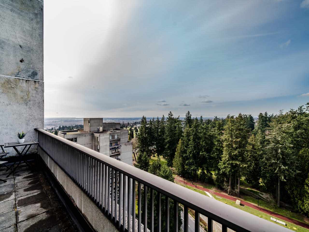 Affordable! Views! Immaculate! Excellent 712 sf south-west facing 1 bdrm + 1 bath upper floor unit in prime Metrotown. This fabulous home features serene views overlooking Central Park, a large 100 sf balcony, spacious living room, dining room and flex/office space, in-suite laundry with pantry, an upgraded energy-efficient LED lighting system, low $242.60/mo maintenance fees (includes heating), 1 parking & 1 locker. Huntley Manor is a well-managed building with a live-in building manager and has resort-style amenities including an exercise room, billiard room, racquetball court, table tennis, sauna, party room, and common rooftop deck. Walking distance to both Patterson & Metrotown Skytrain stations (12 mins walk), Metrotown, Station Square, Crystal Mall, and Burnaby Library. See online Virtual Tour!