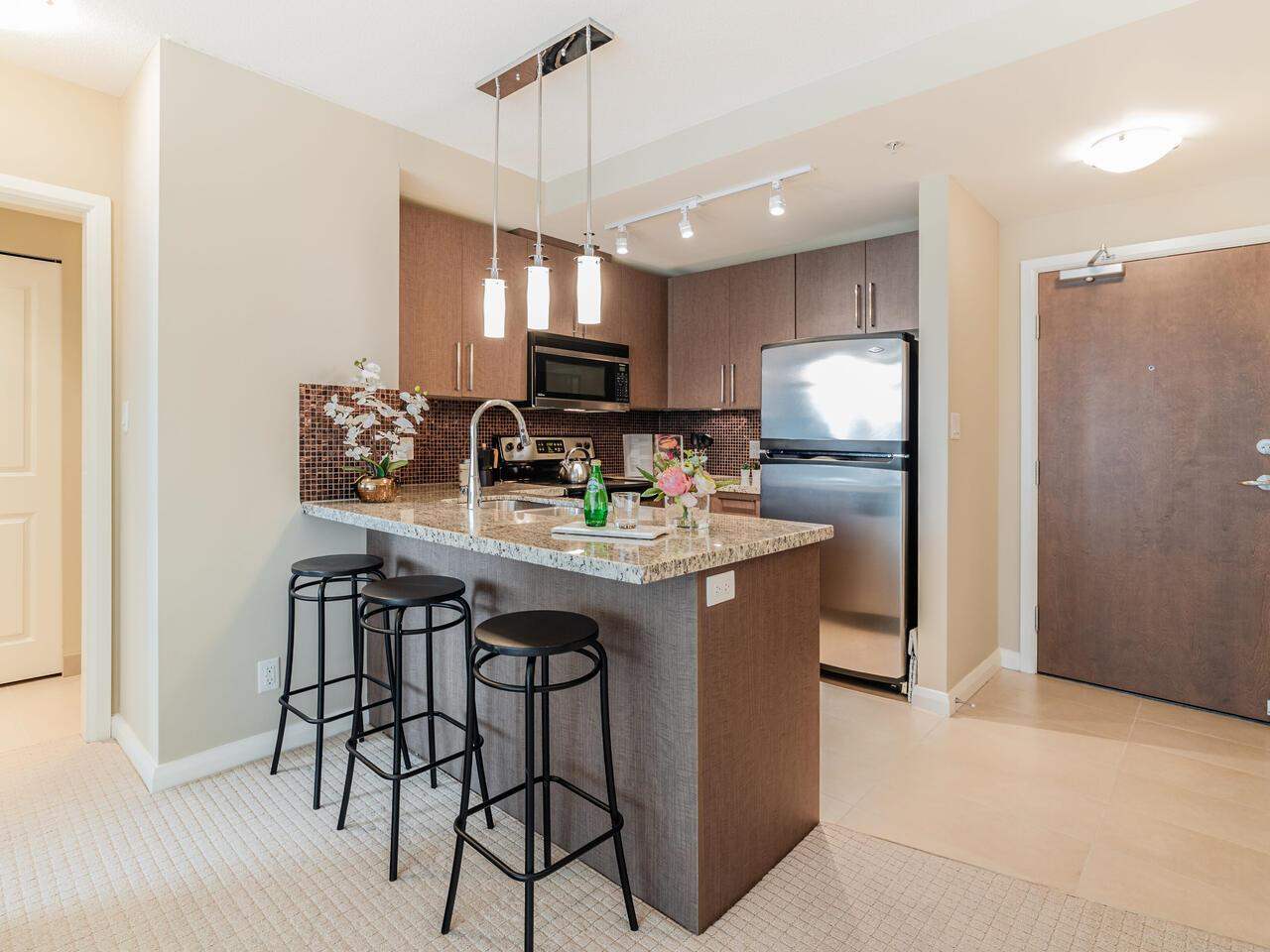 Great Urban Lifestyle at sought after Marinus at Plaza 88! This spacious 818 sf, 2 bdrm + 2 bath unit in move-in condition features city and Fraser River water views, a large 110 sf balcony perfect for BBQs, ideal floor plan with separated bedrooms for privacy, granite countertops, s/s appliances, a handy breakfast bar, and a cozy fireplace. Bldg amenities include concierge service, exercise room, party room, sauna/steam room, roof top garden, and secured access to New Westminster Skytrain station and bus exchange. Walk to shops, services, dining, theatre, Douglas College, and close to New West Quay. You do not need a car here! But this unit does come with one random parking stall on a first-come-first basis in the common parkade and one storage locker. Pets OK and Rentals OK. Ideal for investors too!