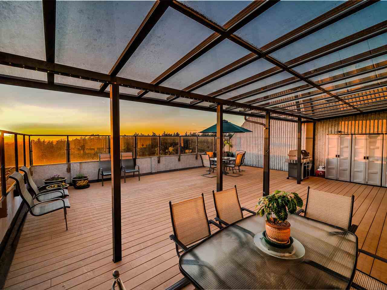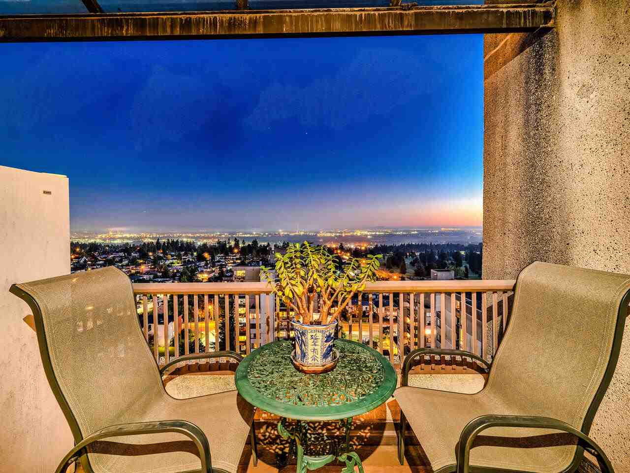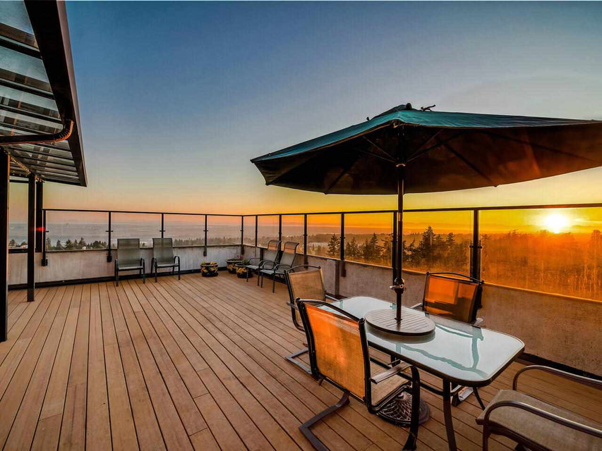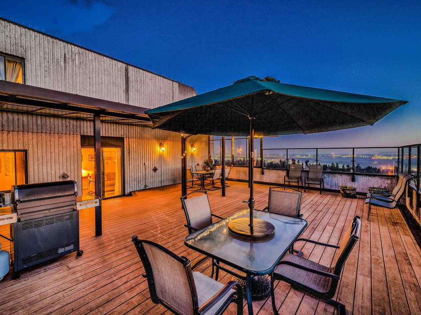 PENTHOUSE LIVING at an AFFORDABLE PRICE! Rarely available 1,755 sf, 3 bdrm + den, 2.5 baths home with almost 1,000 SF of PRIVATE OUTDOOR SPACE for year-round entertainment. UNOBSTRUCTED 270-DEGREE VIEWS from Mt Baker, Richmond, Van Island, Central Park, to Grouse Mtn. This updated and lovingly cared for home fits house-size furniture, has a sunny family room, office/den, pantry/storage rm, 2 large pkg stalls, and a strg locker. Comfortable hot water heating system and hot water are included in low $542.06/mo maintenance fees. Huntley Manor is a well run, well maintained, rental restricted building with live-in building manager, resort amenities including gym, squash court, sauna, table tennis, billiards, & party rm. 10 mins walk to Metrotown, Metrotown skytrain station, and Crystal Mall.