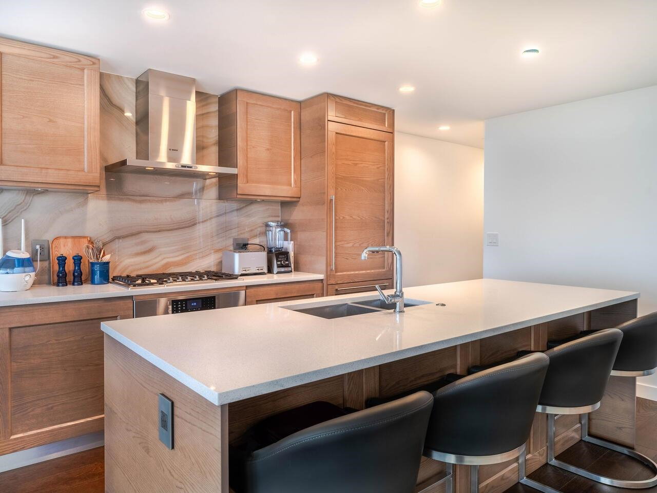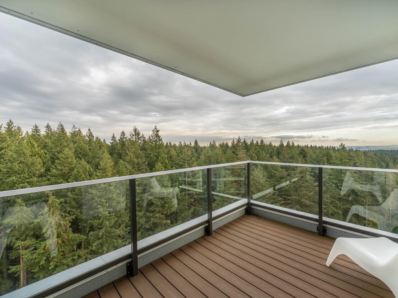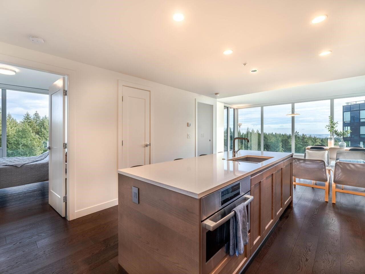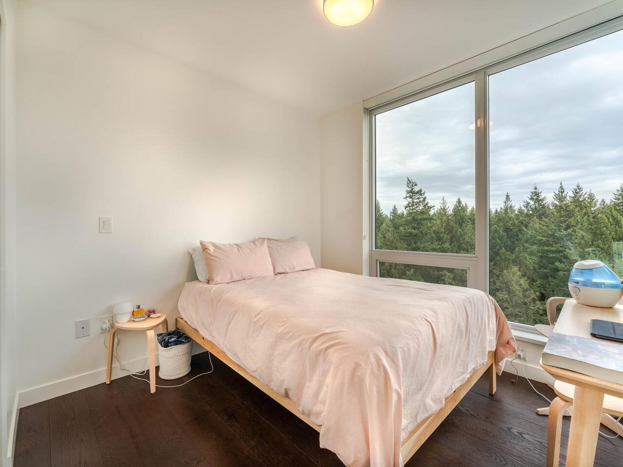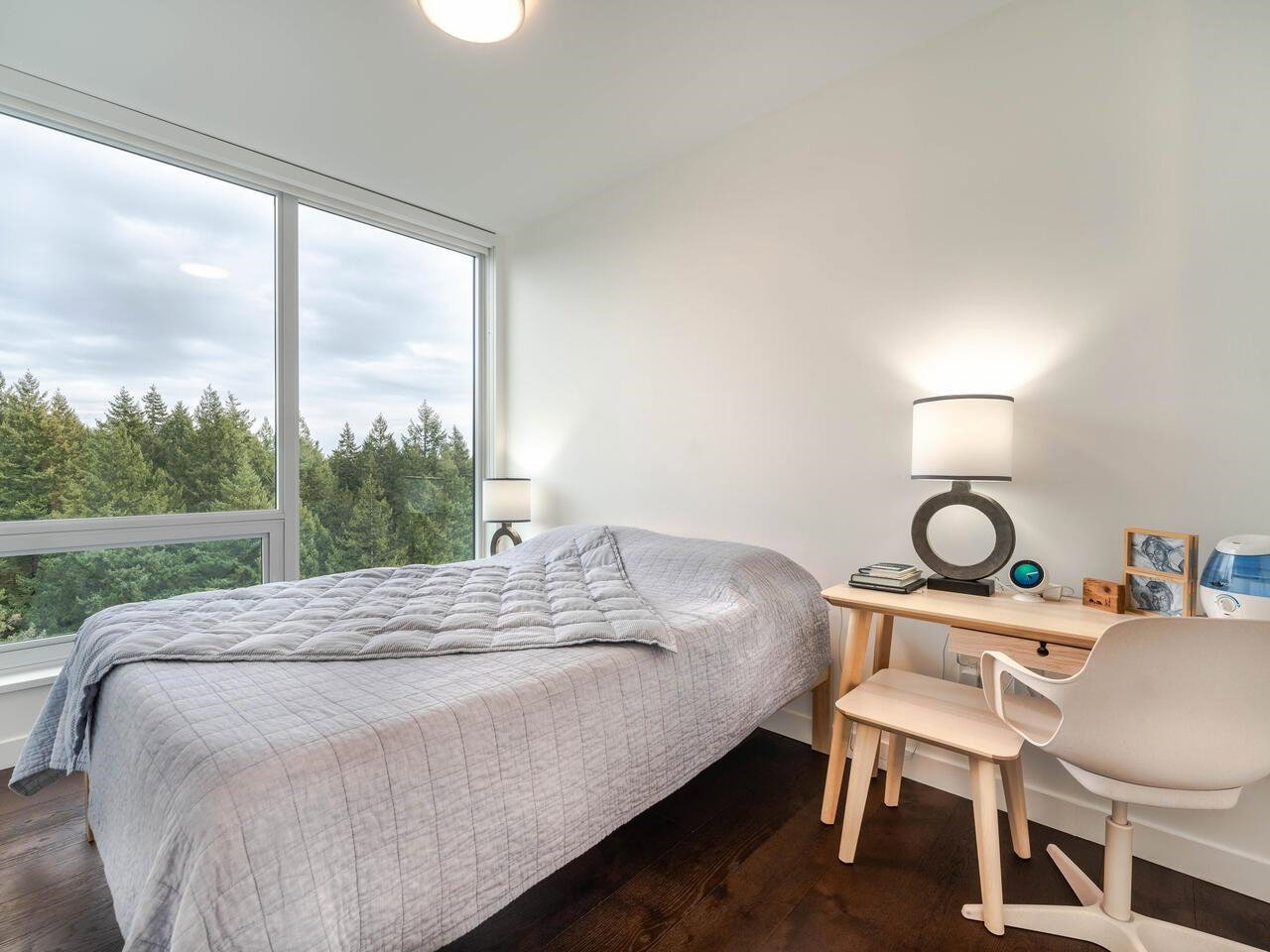 Enjoy south, east and west exposures with TRANQUIL OCEAN VIEWS from the living room to LUSH FOREST VIEWS from the bedrooms! This 1,075 sf, 2 bdrm + den, 2 baths with large 110 sf patio is an UPPER FLOOR CORNER UNIT in LUXURIOUS IVY ON THE PARK, a newer concrete hi-rise built by Wall Group. Features include A/C, high ceilings, expansive windows, level 2 EV parking stall, & 2 strg lockers. Amenities include concierge service, gym, study room, music room & sound studio, lounge with BBQ area, gardens, playground, roof top patio, and bicycle room. Walking distance to University Hill Secondary, UBC campus, Pacific Spirit Park, shops, dining, and services in Wesbrook Village.