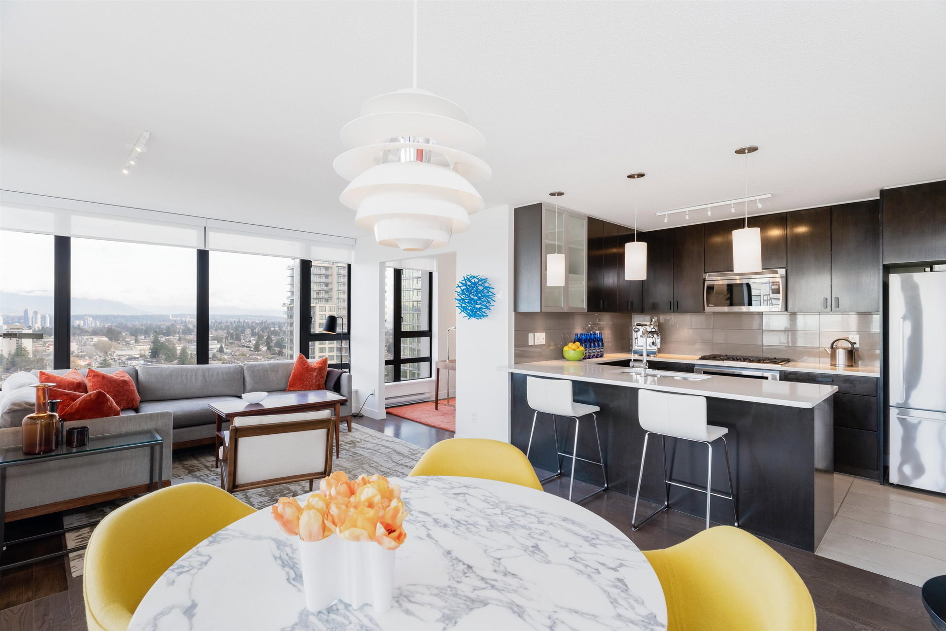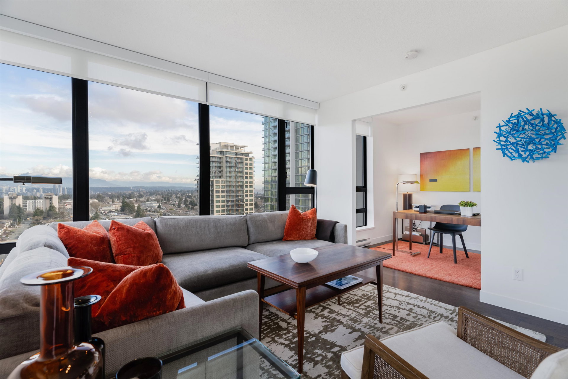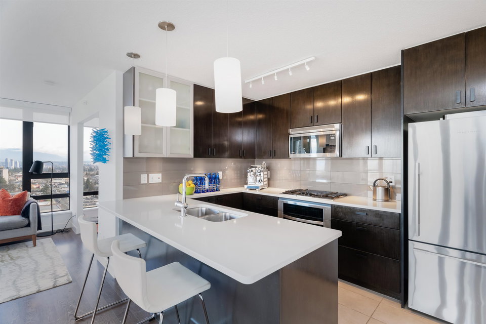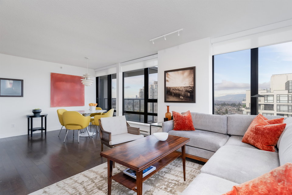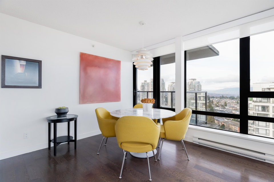 ESPRIT SOUTH TOWER, BUILT by BOSA, check out this RARELY available STUNNING CORNER VIEW suite. One of the LARGEST floor plans with PANORAMIC VIEWS from the Fraser River to the States,and the lights of Lions Gate Bridge. Check out this RENOVATED OPEN PLAN 2 bedroom & Den with 2 Full Baths, Ensuite with separate shower and tub. Well designed with great finishes, NEW APPLIANCES, lots of built in cabinetry, closet organizers & more. Quality built CONCRETE building with caretaker, gym, lounge, social room & patio. PETS & RENTALS ALLOWED. 2 large SXS Parking & large storage locker. GREAT LOCATION, steps to the EDMONDS SKYTRAIN, Highgate Mall, Library, Community Centre, & lots of shopping and restaurants. OPEN WED Feb 9th 6-7pm & OPEN SAT Feb 12th 2-4pm. VIDEO POSTED to MLS & Realtors Website now