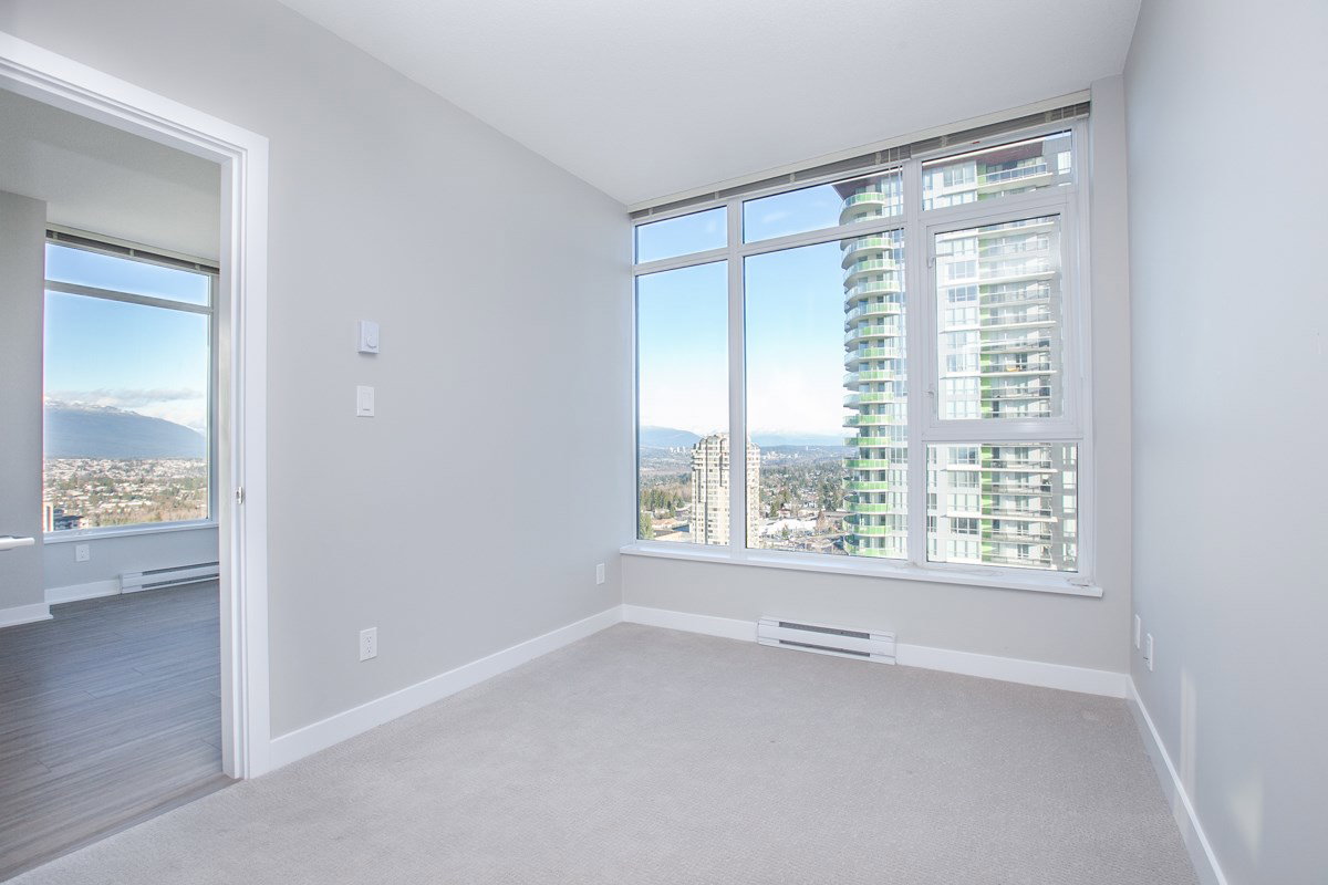 Priced to Sell! A Must-See for the serious Buyer! Amazing mountain, city and water views (Deer Lake) from this upper northeast corner 2 bdrm + 2 bath unit in THE PARK, built by reputable Intergulf. Excellent 2 yrs old building, like-new condition, efficient layout, large 100 sf balcony, s/s appliances, gas stove, quartz countertops, laminate flooring, and 2-5-10 home warranty. Building amenities include rooftop deck & lounge, garden, party room, hydrotherapy hot & cold tubs, sauna, gym, and bike room. 92 Walk Score. Steps to Bonsor Comm Ctr, Metrotown, skytrain, library and park. One parking (with electrical outlet) and two storage lockers. Rentals and Pets OK.