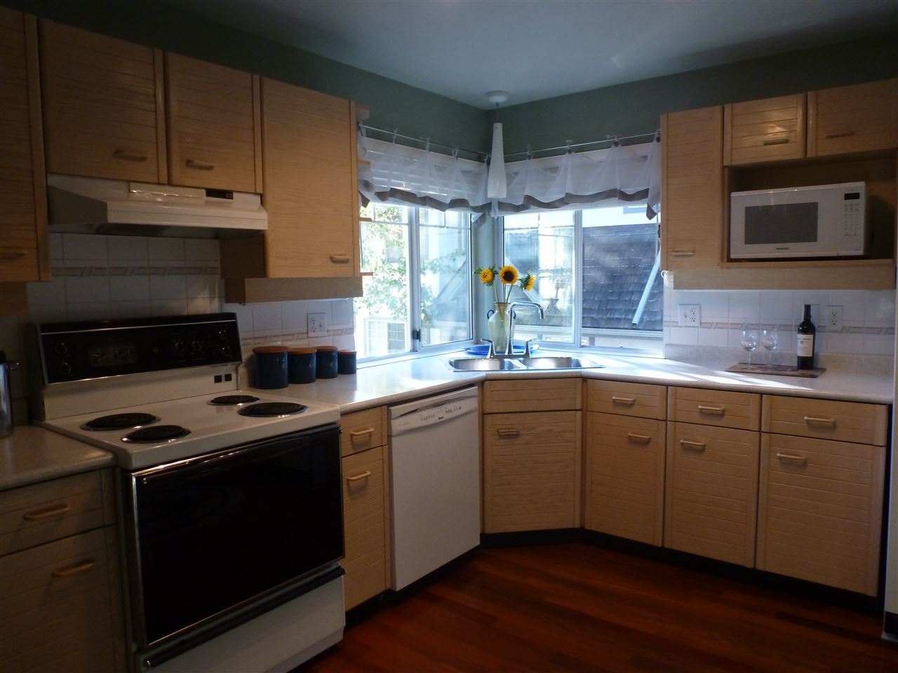 Large bright immaculately maintained and updated 2 bedroom corner unit in the LA Fontenac gated community in the Killarney area 48th & Boundary. All rooms are large, hardwood and carpet though out with a cozy gas fireplace and covered outdoor patio for a year round living in this well run quiet complex with trees, gardens and proximity to Central Park, Metro Town, school & Sky train. In suite laundry, 2 underground parking spots and additional storage compete this executive style townhouse.