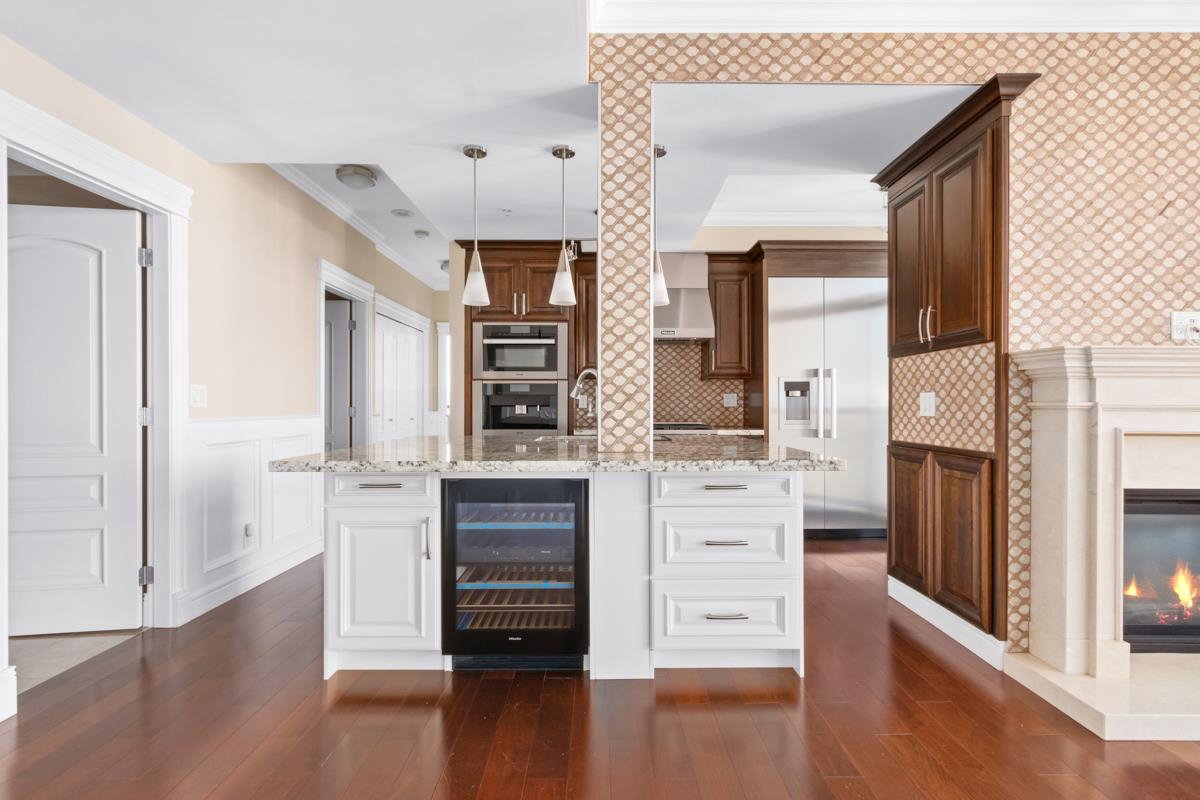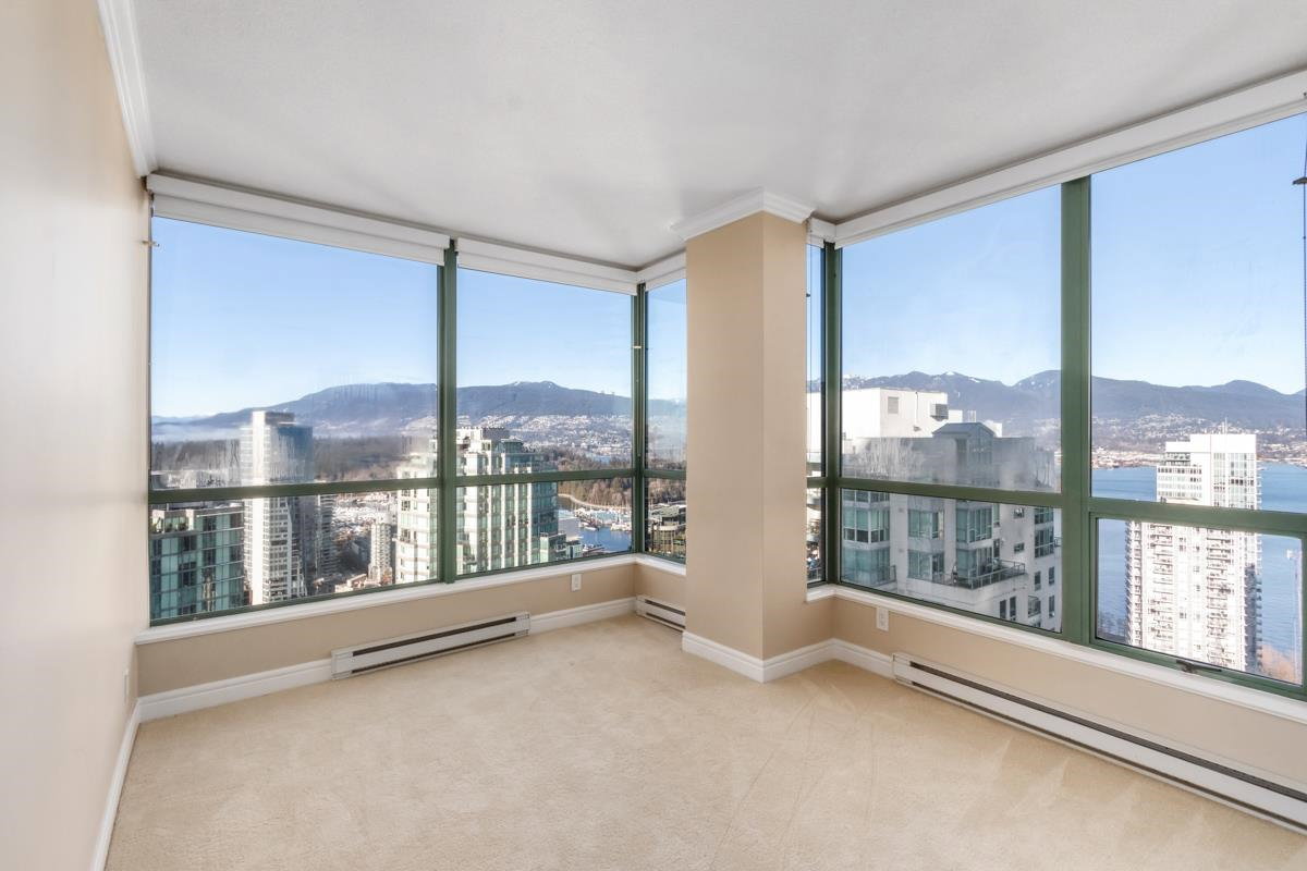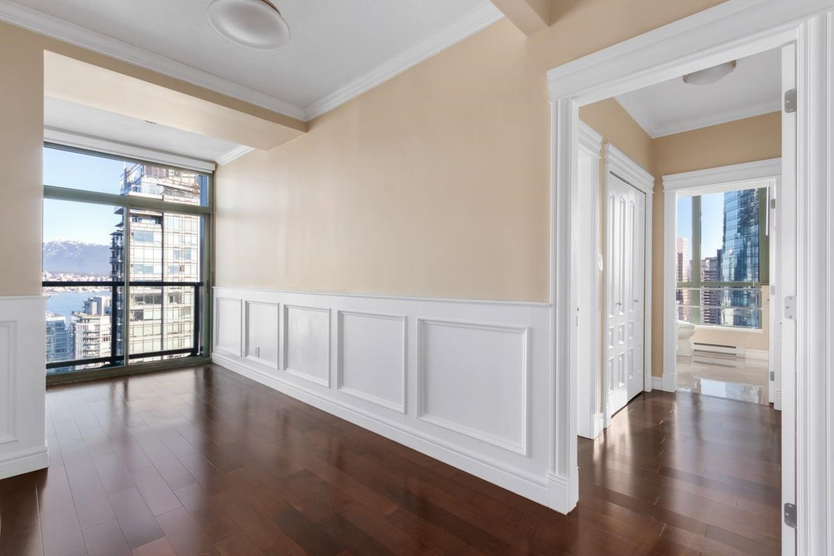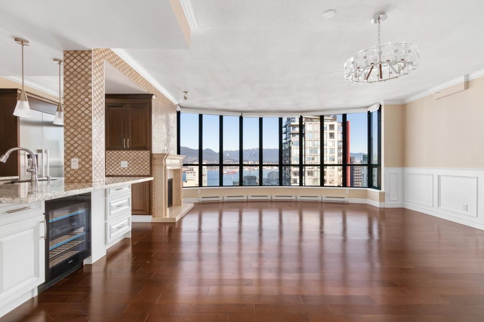 STUNNING OCEAN & MOUNTAIN VIEW!! Located in the prestigious beautiful Coal Harbour community, steps away from the picturesque seawall, Stanley Park, Robson St, Pacific Centre, urban convenience is right at your fingertips. It is the most PRIME and UNIQUE unit in this building, combining two corner units, both with incredible views stretching from Coal Harbour all the way to English Bay, not to mention it is sitting on the 31st floor and there is nothing in between the unit and the best view of Vancouver. Completely renovated in 2016, expect a luxurious yet modern lifestyle with 9 ft ceilings, high-end Miele appliances, maple cabinets, marble countertops & imported fireplace. TWO MASTER-BEDROOMS, and a 3rd bedroom+den+storage offer you ultimate privacy and functionality. CALL TODAY & VIEW!