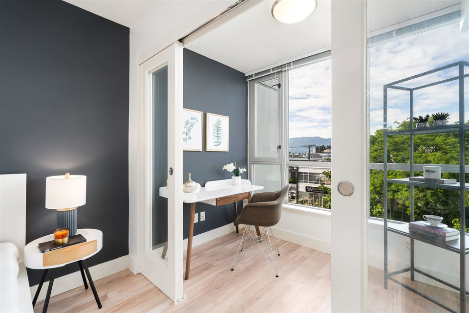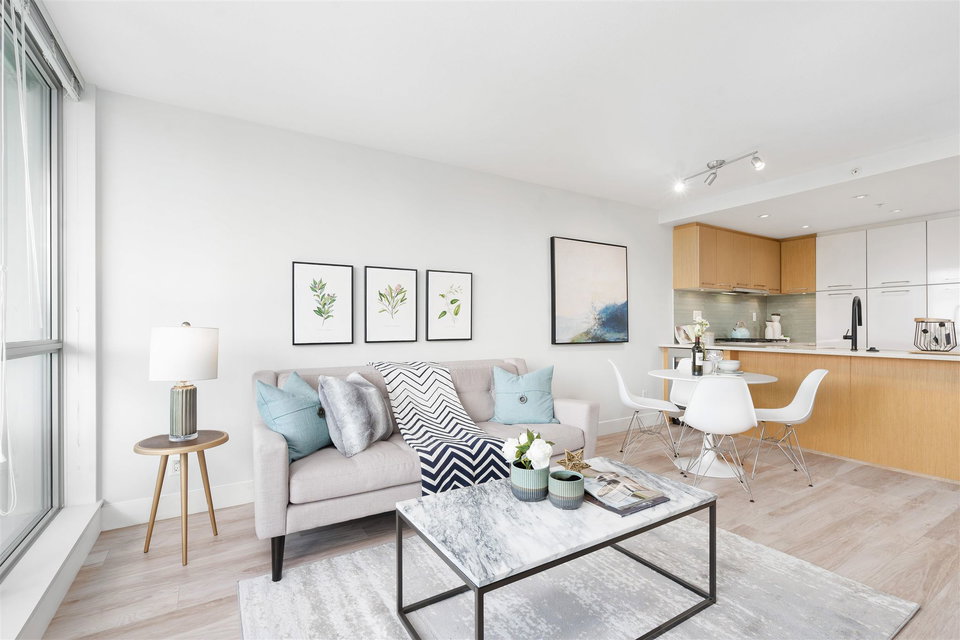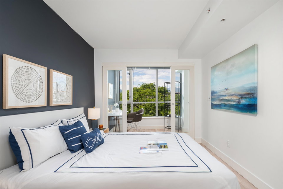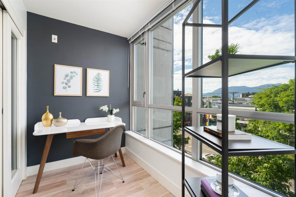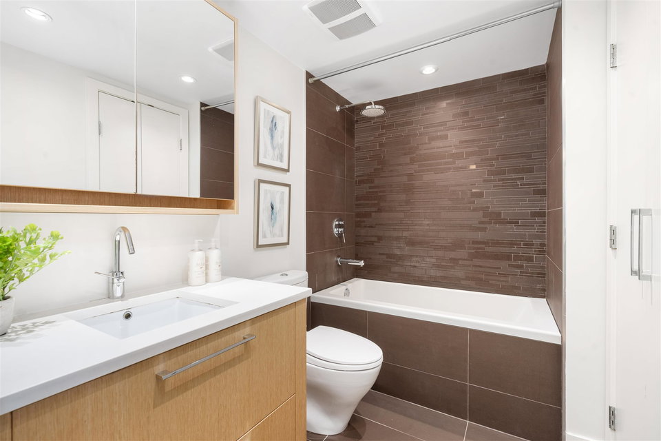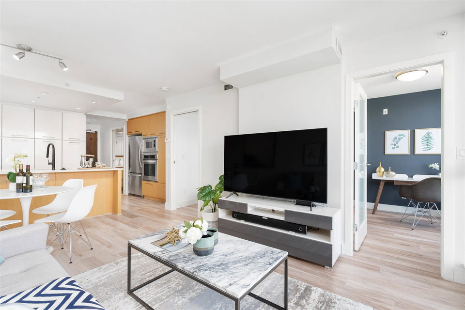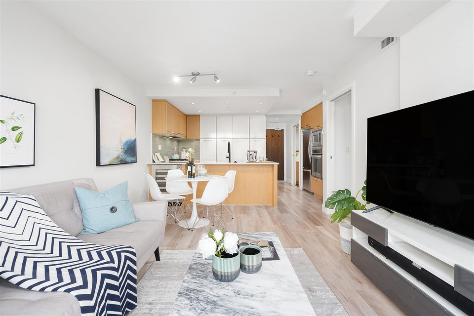 Welcome to Mantra by Cressey. Fantastic open concept layout in the heart of desirable False Creek. This north facing 1 bed, den w/ flex features mountain and city views from every room. The beautiful kitchen is equipped w/ a gas cooktop, built in microwave & oven, custom millwork, quartz countertop, wine fridge & breakfast bar. Great sized bedroom w/ walk in in closet. Geothermal heating & cooling system, building gym and only steps away from West 4th Ave, Kitsilano beach, Granville Island & everything False Creek has to offer. Don’t miss your opportunity to see this one!