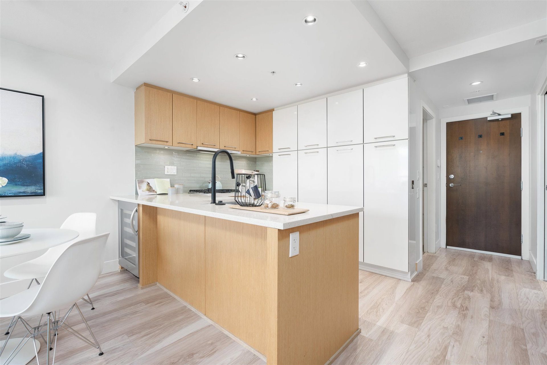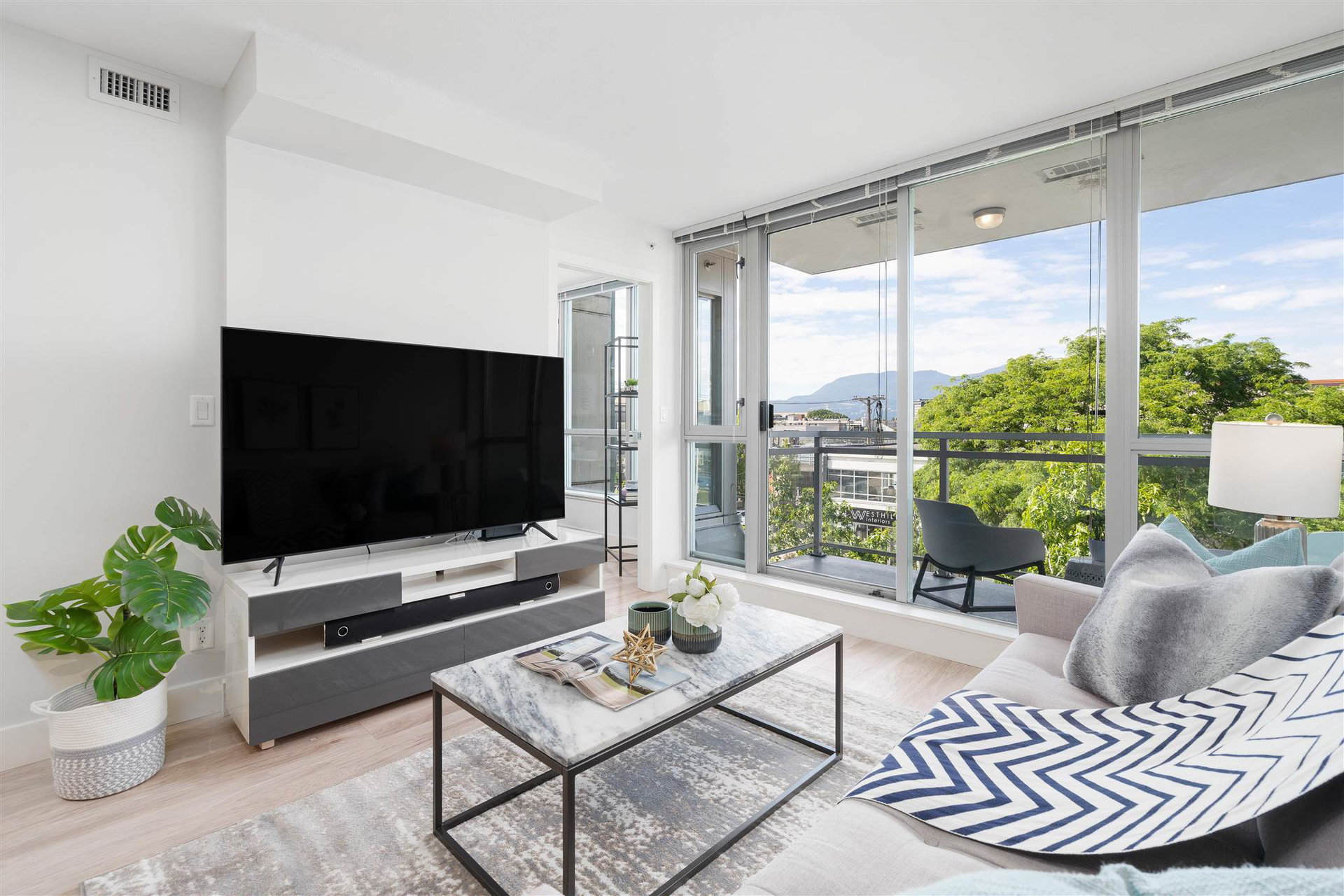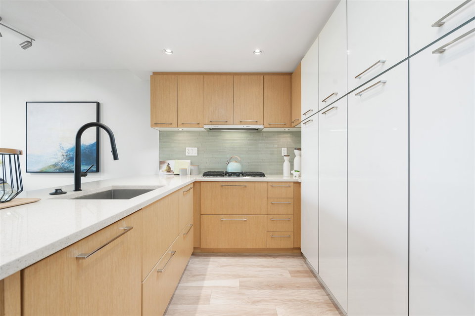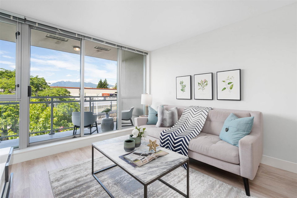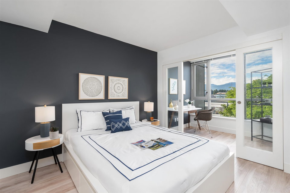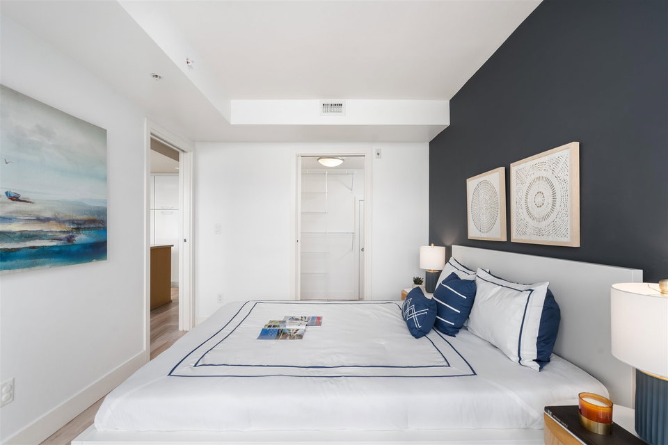 Welcome to Mantra by Cressey. Fantastic open concept layout in the heart of desirable False Creek. This north facing 1 bed, den w/ flex features mountain and city views from every room. The beautiful kitchen is equipped w/ a gas cooktop, built in microwave & oven, custom millwork, quartz countertop, wine fridge & breakfast bar. Great sized bedroom w/ walk in in closet. Geothermal heating & cooling system, building gym and only steps away from West 4th Ave, Kitsilano beach, Granville Island & everything False Creek has to offer. Don’t miss your opportunity to see this one!