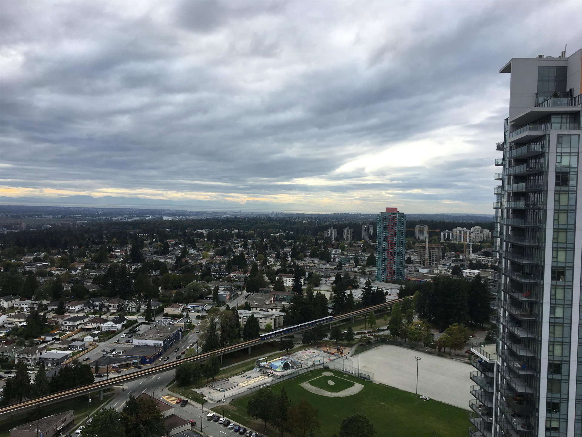 Welcome to Vittorio! A quality built hi-rise by Polygon in prime Metrotown. This fabulous 2 bdrm + 2 bath, upper floor unit, has a huge 148 sf balcony with stunning urban views to the south, west and north! Features include air conditioning, functional layout with two separated ensuite bedrooms for privacy, walk-in closet & double sink in master bdrm, spacious kitchen with center island and gas cooktop. Enjoy premium amenities at Vittorio Club including a fully equipped fitness studio, a full size gymnasium, cozy study rooms, comfy meeting rooms, open social lounge, and playground. Walking distance to Metrotown shopping, Bonsor Recreation Complex, Royal Oak Skytrain, and more! High 85 walk score and 85 transit score! Rentals OK and Pets OK.