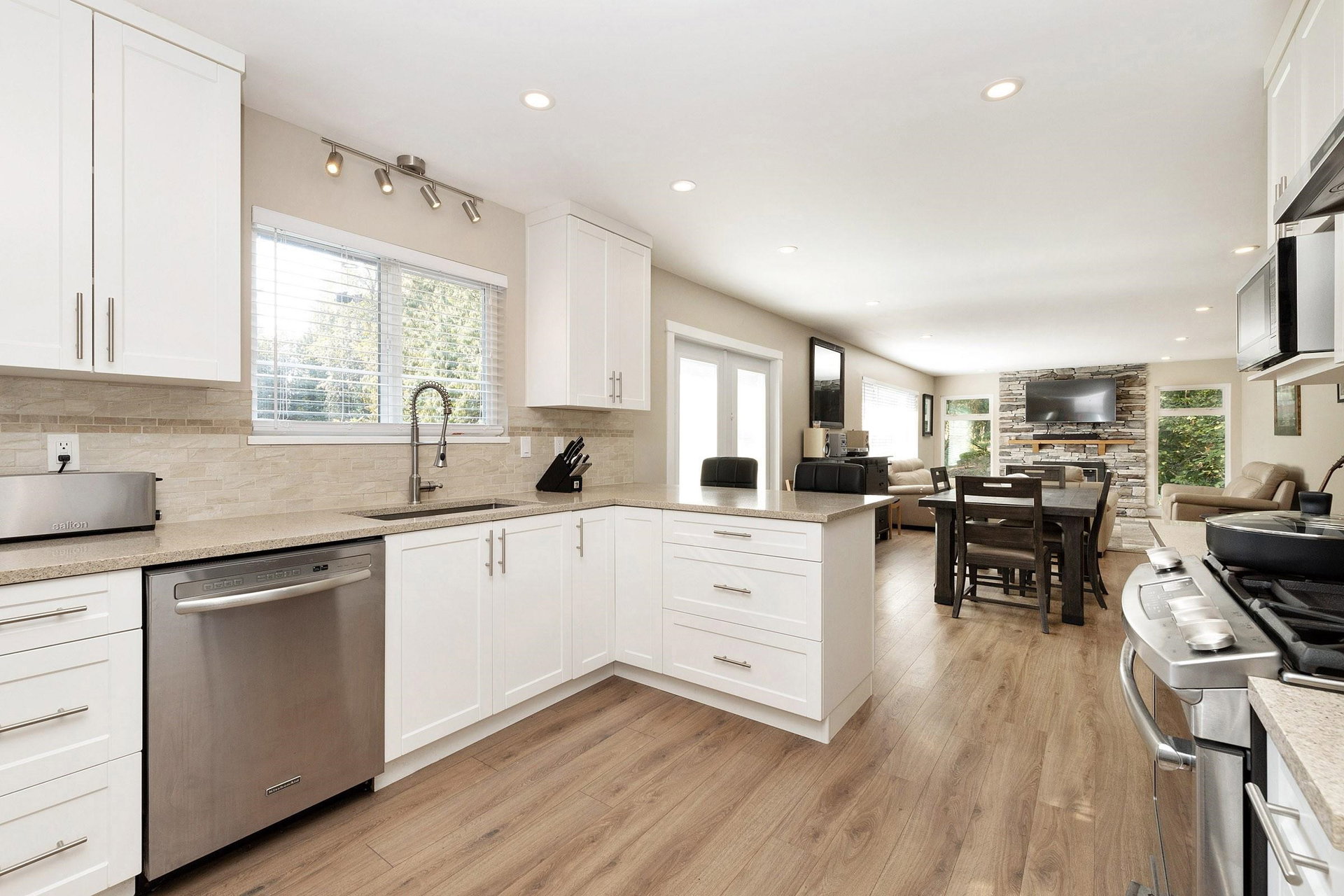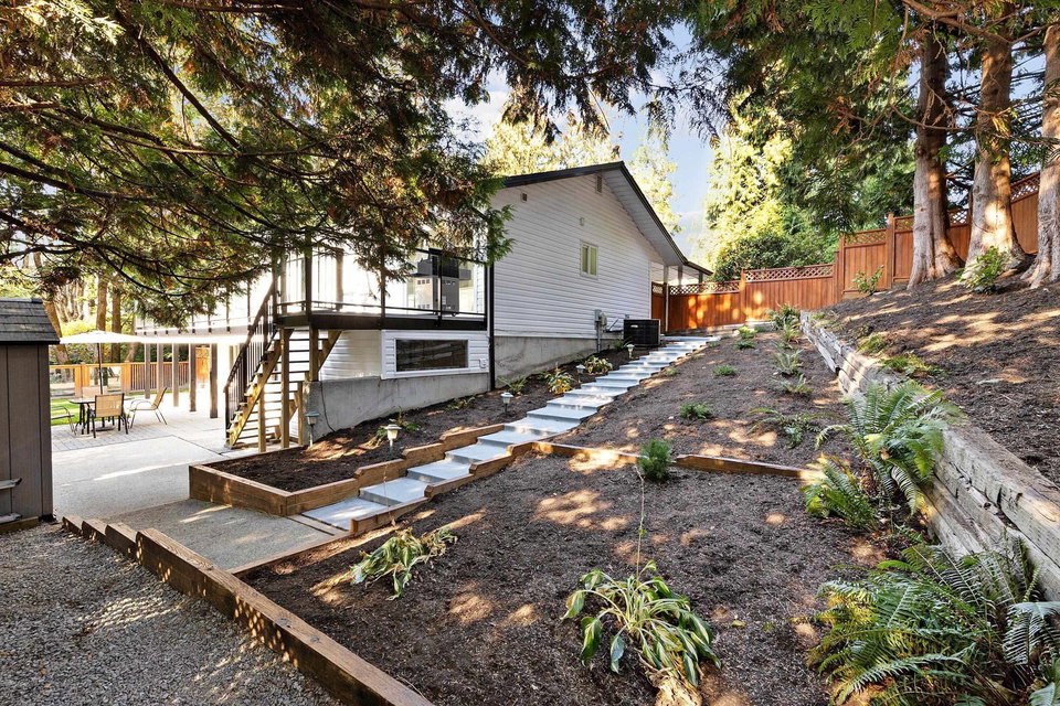 Privacy plus, the perfect package. Completely renovated rancher w/full walkout daylight basement. Bright 1 or 2 bedroom suite. Massive 12,700 sq.ft. south facing greenbelt lot in a quiet culdesac. Extremely private creekside setting must be seen to be appreciated. Base of Burke Mtn. on one of Poco’s nicest streets. One block to brand new Irvine elementary (french immersion). 2 blocks to bus. Just 5 mins to Coquitlam Centre Mall and Skytrain. Features newer modern gourmet kitchen w/quartz counter, S/S appls. and gas stove. Open great room concept. Master bedroom w/bay window, ensuite bath & walkin closet. Huge sundeck overlooks peaceful creek & greenspace views. New roof, Heat pump w/AC, XL laundry & storage down. Workshop & storage shed. Over height double carport + room for RV or boat.
