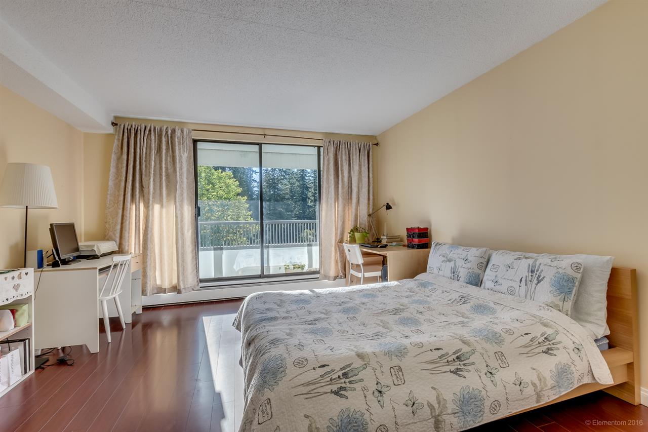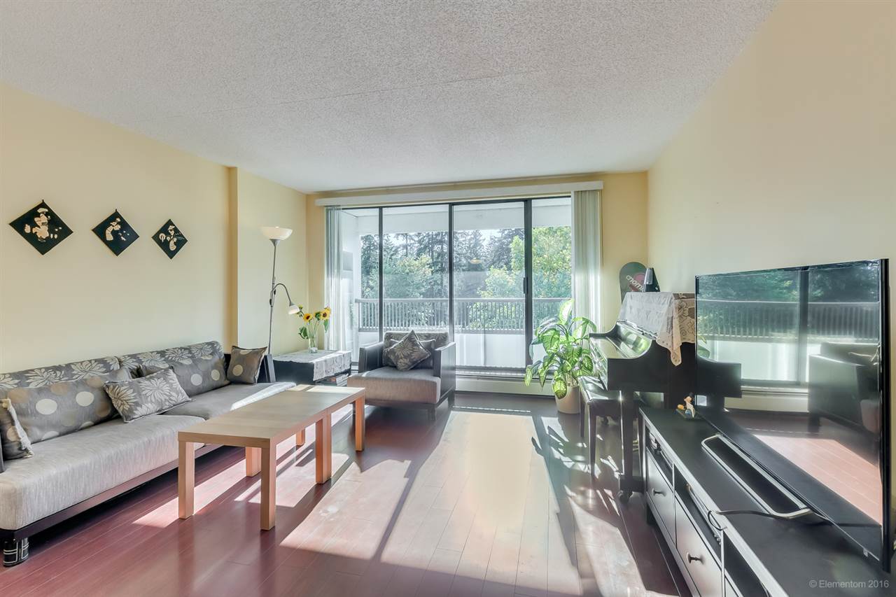 Fantastic Metrotown Location! Beautiful Central Park views! Open, spacious, bright, 910 sf, 2 bdrm + 1 bath unit in desirable Huntley Manor, a well maintained concrete highrise. Features include huge balcony, laminate flooring, generous room sizes, newer appliances, 1 parking & 1 strg locker. Building amenities include rooftop view patio, gym, billiards, ping pong, party room, racquetball court, & sauna. Steps to Metrotown & Patterson Skytrain Stations, tennis courts, golf course, Crystal Mall, and Metrotown shopping. Low $263.22/mo strata fees include heat & hot water. Huge $500,000 in Contingency Fund. Rentals already over max of 10 units, no pets allowed.