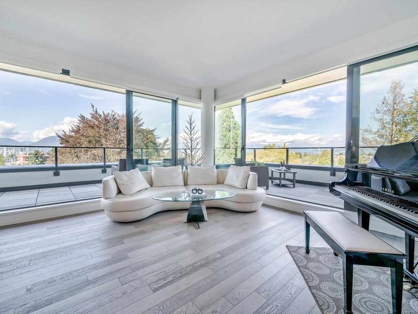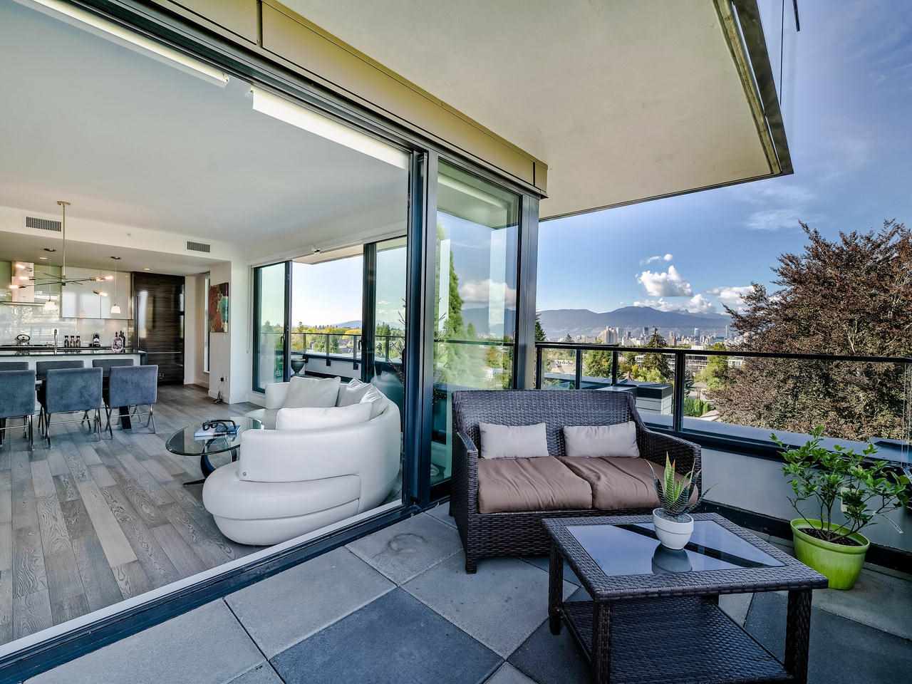 Wow! Chic 3 bdrm + 3 bath SUB-PENTHOUSE, northeast corner unit at the Monarch. Perched high above the street and full of PRIVACY, enjoy PANORAMIC VIEWS from every window of Downtown Vancouver, North Shore mountains, Burnaby skyline, and/or QE Park. Exclusive features include two spacious view terraces (total 680 sf), handy mudroom, wok kitchen/pantry, open concept main living space with good bedroom separation, 9’4 ceilings, A/C, Gaggenau appliances, excellent condition, 2 pkg stalls, and strg locker. 5 mins walk to King Edward skytrain station and trendy Cambie Village. Easy walk to Edith Cavell Elem, Eric Hamber Sec, QE Park, Hillcrest Comm Ctr, and Douglas Park. Pets OK, Rentals OK. Priced to Sell! See the online virtual tour.