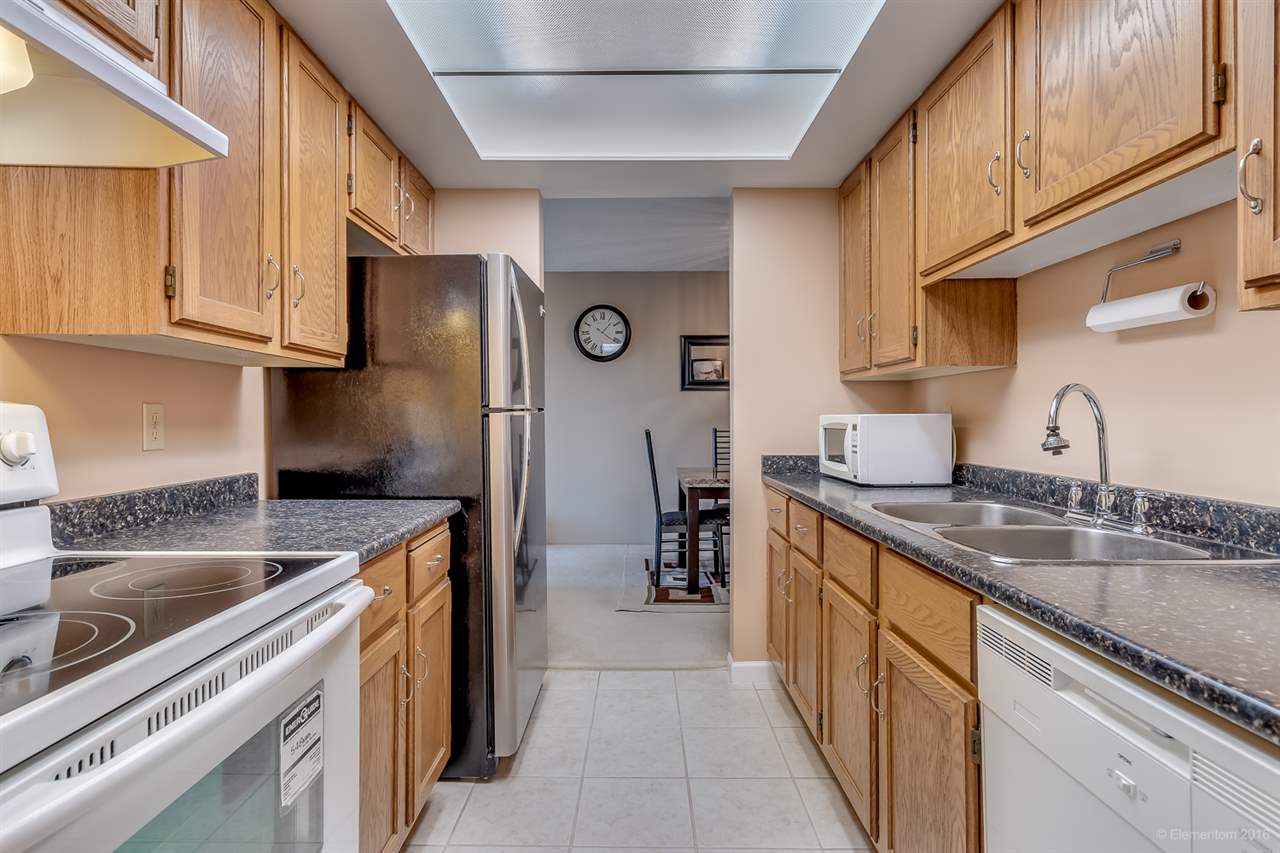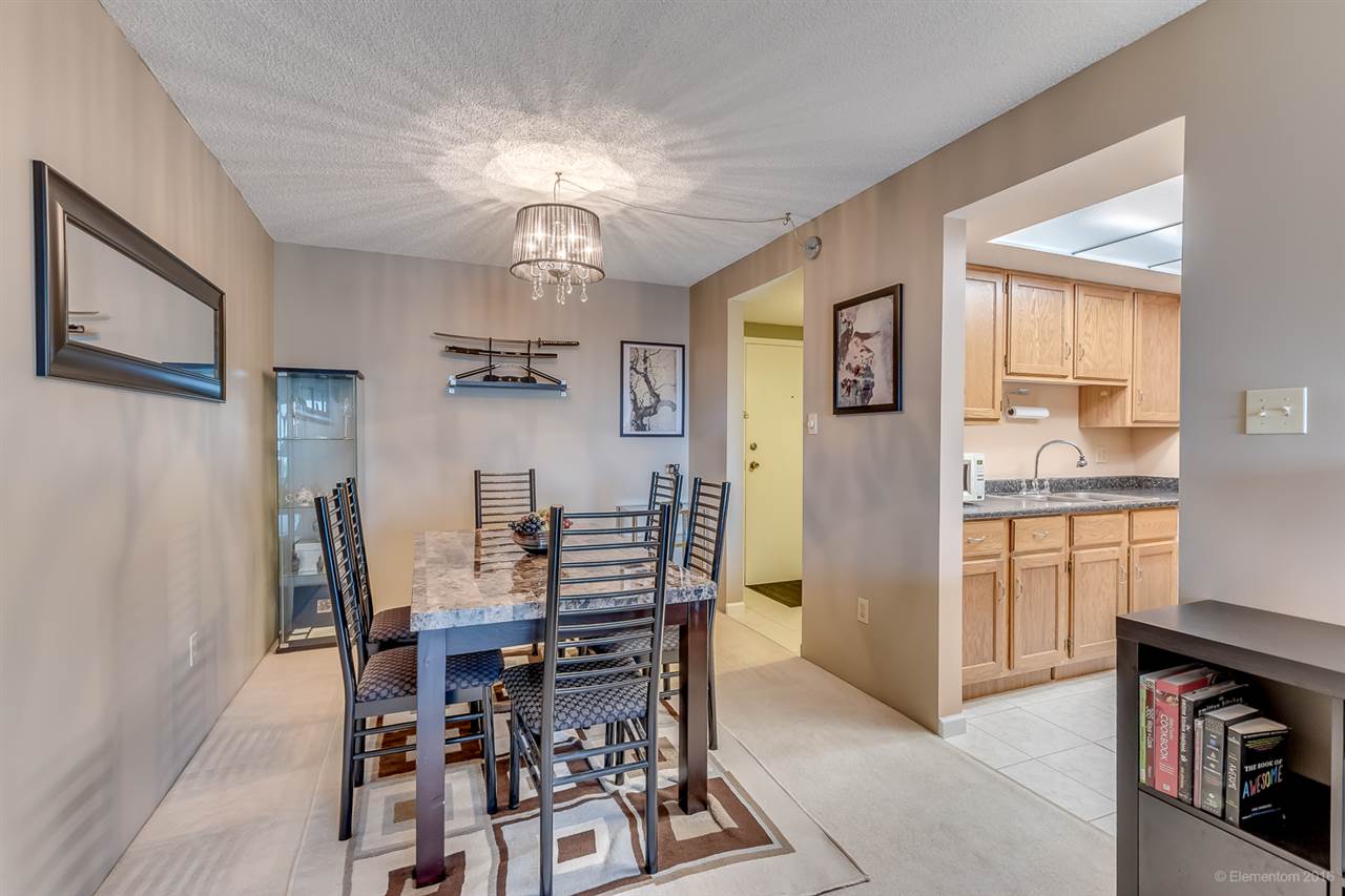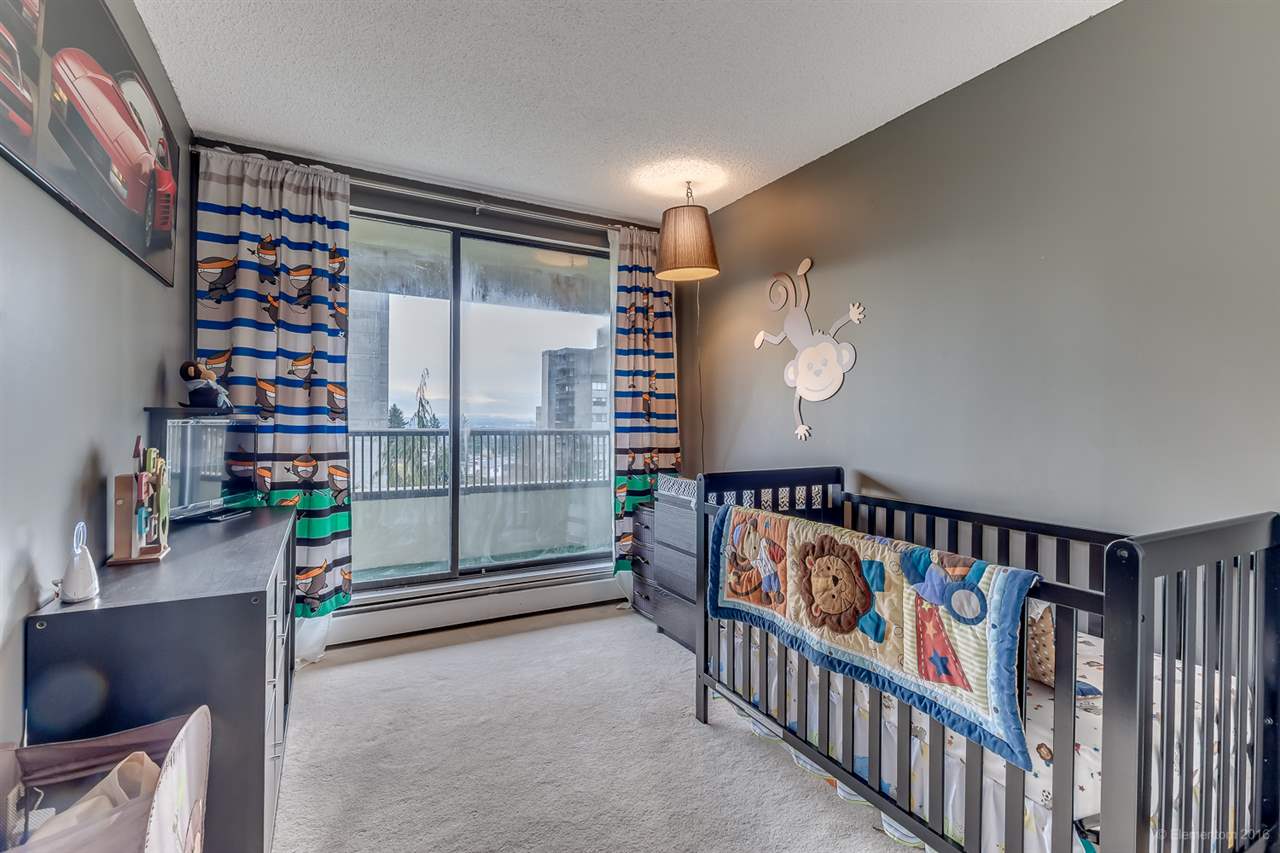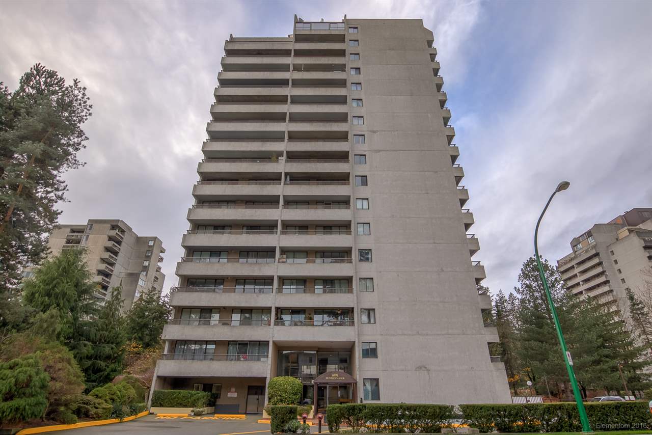 Superb home! Fantastic quiet yet convenient Metrotown location! Spacious 2 bdrms + 1.5 bath updated unit with serene south facing views in desirable Huntley Manor, a well maintained concrete highrise. Features include huge balcony, generous room sizes, formal dining room, in-suite laundry/strg room, move-in condition, newer appliances, 1 parking & 1 strg locker. Building amenities include gym, billiards, ping pong, party room, racquetball court, sauna & rooftop patio. Steps to Metrotown & Patterson Skytrain Stations, Central Park, tennis courts, golf course, and shopping. Low $262.70/mo strata fees include heat & hot water. Huge $420,000 in Contingency Fund. Rentals already over max of 10 units, no pets allowed. See Youtube video at https://youtu.be/h-VQT8eSAfA.