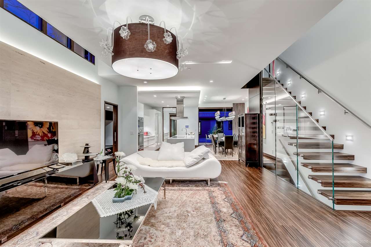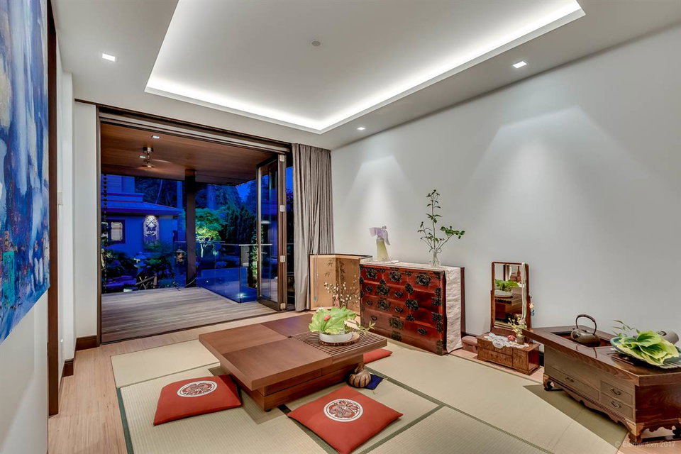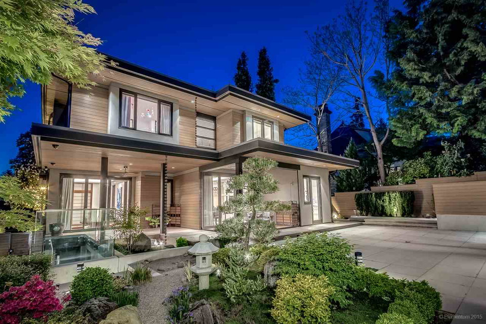 This GEORGIE AWARD WINNING CUSTOM HOME by renowned master builder G. D. Nielsen Ltd. is truly a rare find! Fusion of modern, clean, simple lines with traditional Japanese aesthetic elements are unique in design. The open functional spaces promote useful everyday contemporary living. Exceptional detailing and passion for perfection are evident throughout this state-of-the-art home. Features include Poggenpohl kitchen, wok kitchen, wet bar, massive Travertine stone walls, striking bamboo floors, oversize Kolbe copper front door & eclipse doors, Italian lighting fixtures, avant-garde laundry room & dumbwaiter, Tatami/guest room, stylish Laneway home, authentic Japanese landscaped gardens & more! A priceless piece of art exemplifying the pinnacle of luxury living!