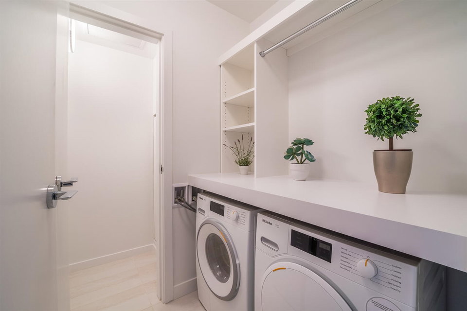 Welcome to Richmond’s new luxurious “2 River Green”, built by prestigious developer ASPAC, situated close to the Richmond Olympic Oval and steps to scenic water views, new residents can enjoy a healthy, luxurious, and modern convenient lifestyle. Enjoy the convenience of the Bang & Olufsen home system with keyless entry, lighting system control, and Bang & Olufsen speakers. This unit features a beautiful 300 sqft patio, with a private city view of Richmond, 9’4 ceilings, high end Miele appliances, mudroom, laundry room, with 1 parking stall and 1 storage locker. “2 River Green” features a luxurious indoor pool, sauna, 24hr concierge, fitness center, billiards room, clubhouse, and many more amenities!