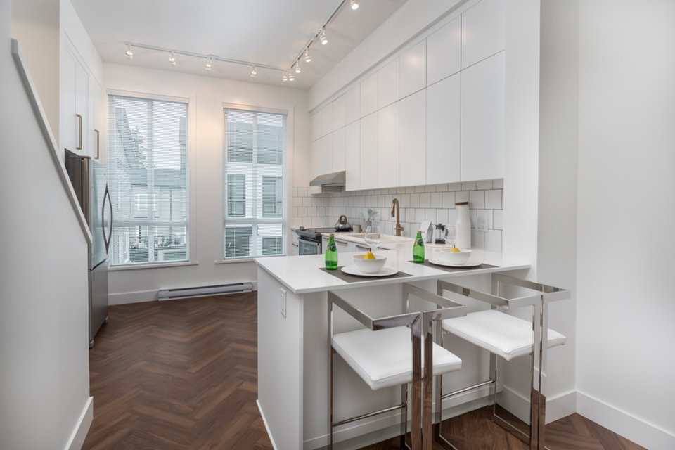 Desirable KITCHNER II built by reputable MOSAIC HOMES. This stylish red brick Georgian 2 bdrm + den and 2.5 bath townhome is beautiful to look at and easy to love. Full of light, open and airy, smart use of space, and towering 10 ft ceiling… all focusing on the most important details in a home. Features include upgraded quartz countertops, s/s appliances, breakfast bar, entertainment size patio off living room, large windows, and two parking. Complex has a recreation centre and ample visitor parking. Walk to Southridge School, Oliver Park, and The Shops at Morgan Crossing. Easy access to Hwy 99 and King George Blvd. Semiahmoo Secondary and Sunnyside Elementary catchment. Pets and Rentals ok, 2-5-10 year new home warranty in place.